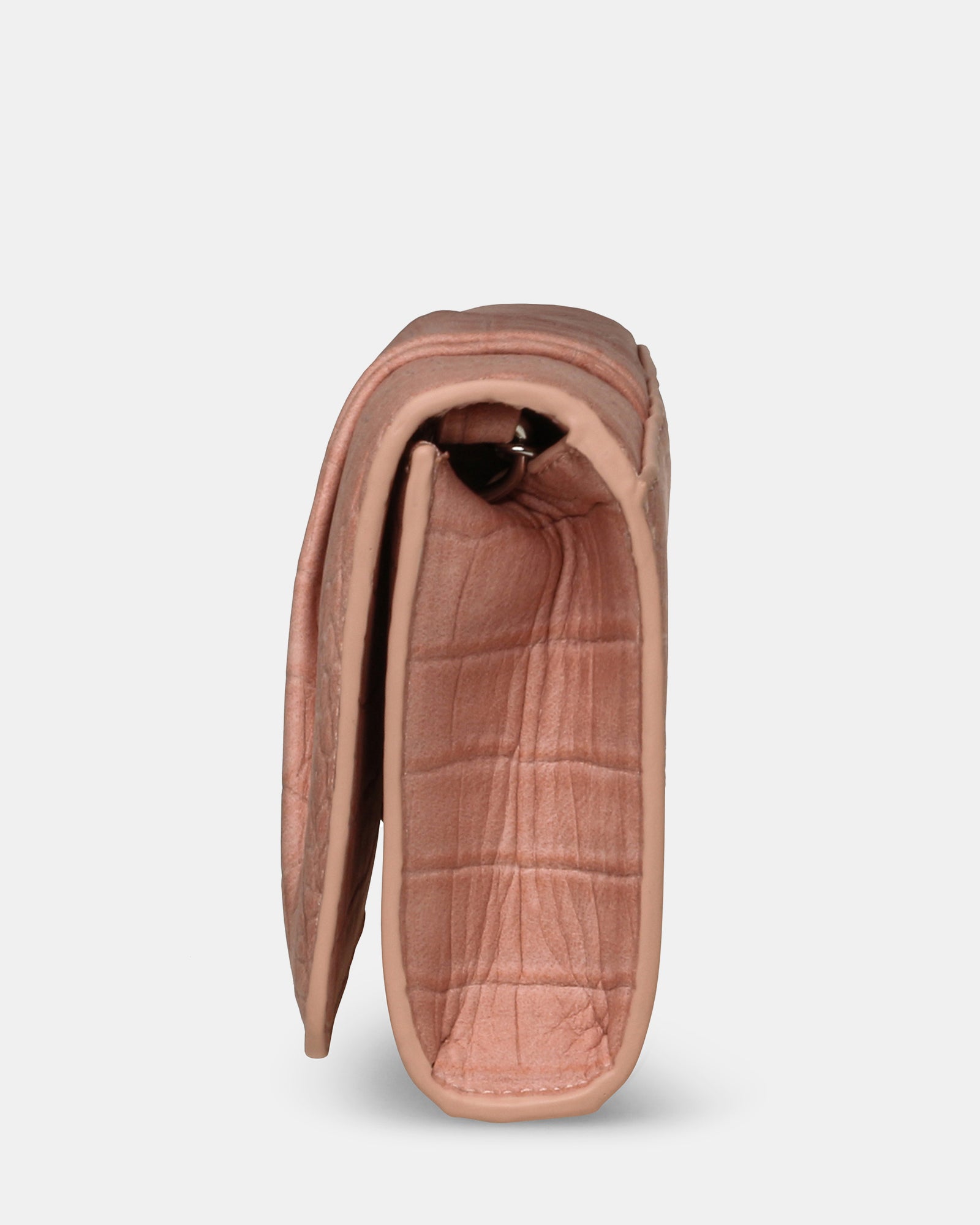 The BAzalea is a stunning clutch that transforms into a crossbody bag with a dainty chain strap. This clutch has a croco finish and scrunched up detailing and is perfect for a brunch with the gals
