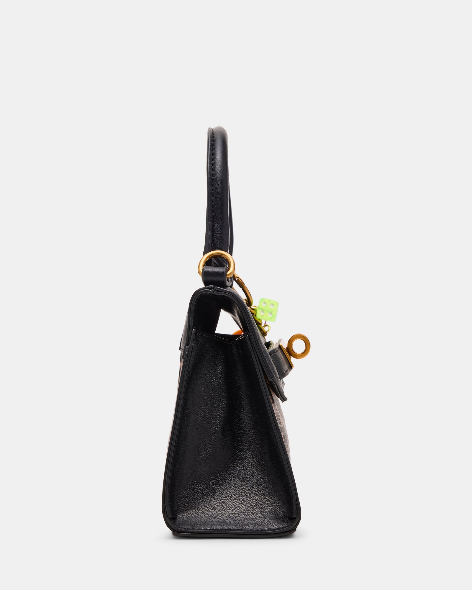 Ain't she cute? Introducing BDeedee! This adorable top handle handbag is the perfect on-trend accessory from day to night fits. Animal prints are still in and BDeedee is a great way to showcase your fashion forward fits with a touch of print. The gold hardware detailing adds an elegant and timeless feel to the silhouette while still featuring a cute charm on the side.