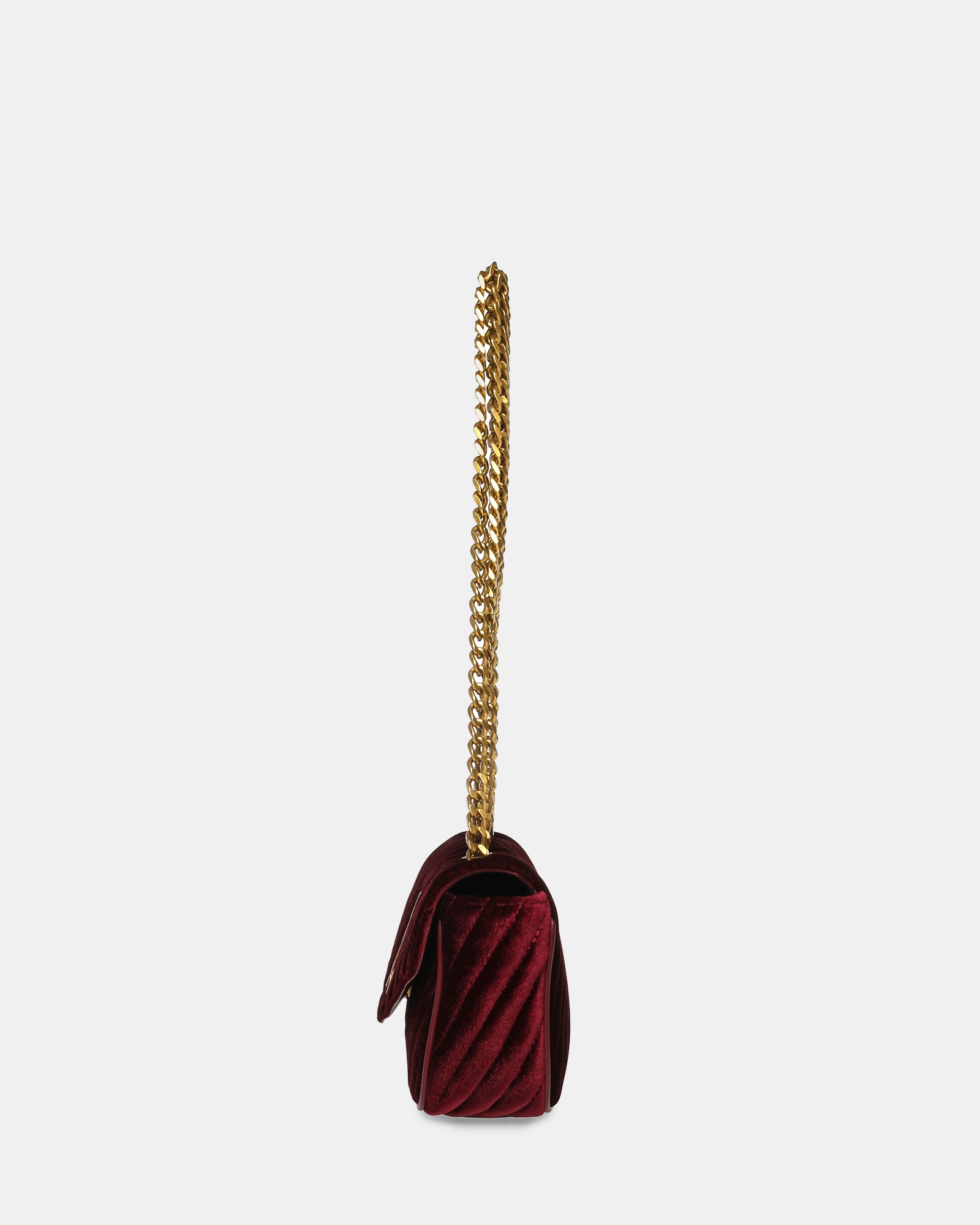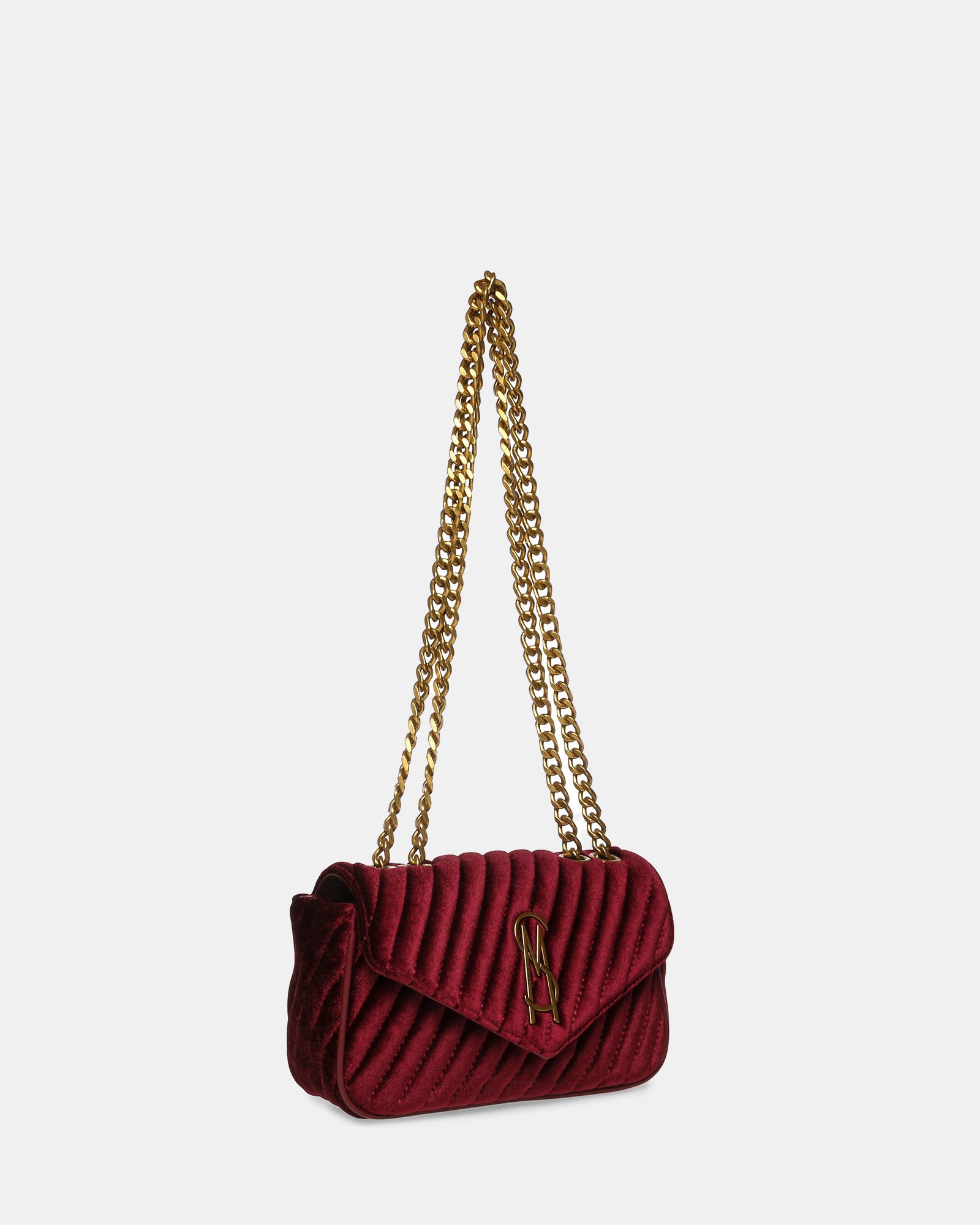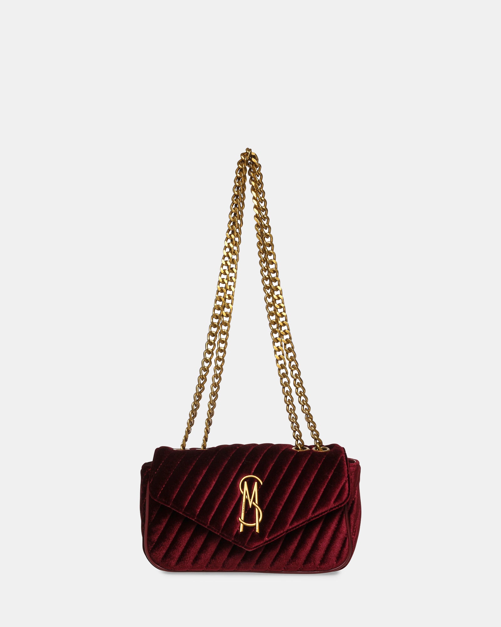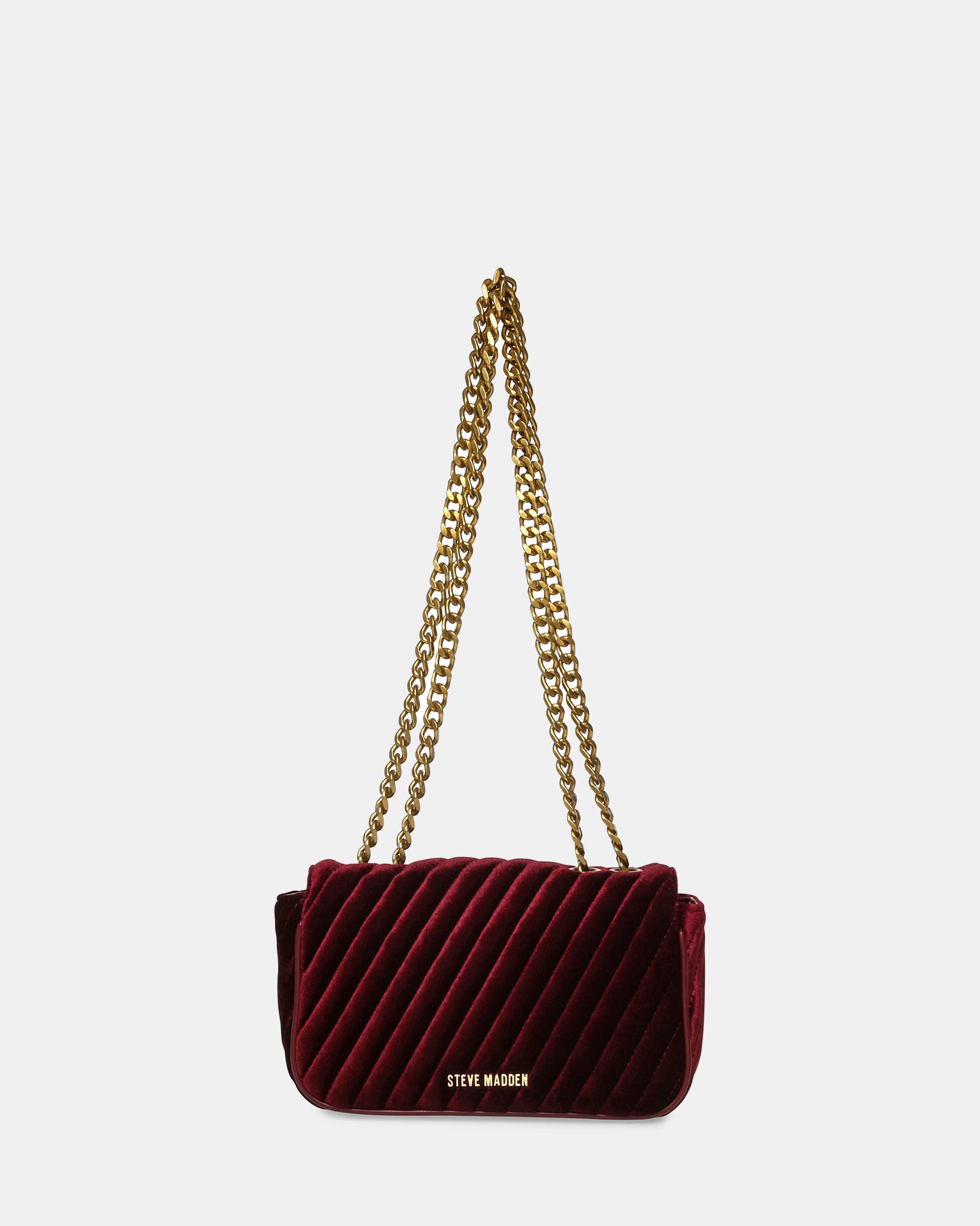 Date night outfits just got better! BEvyn is sure to add that pop of colour to your outfit and goes beautifully with that little black dress and Steve Madden heels. The bag features a double chain strap and a suede wine finish.