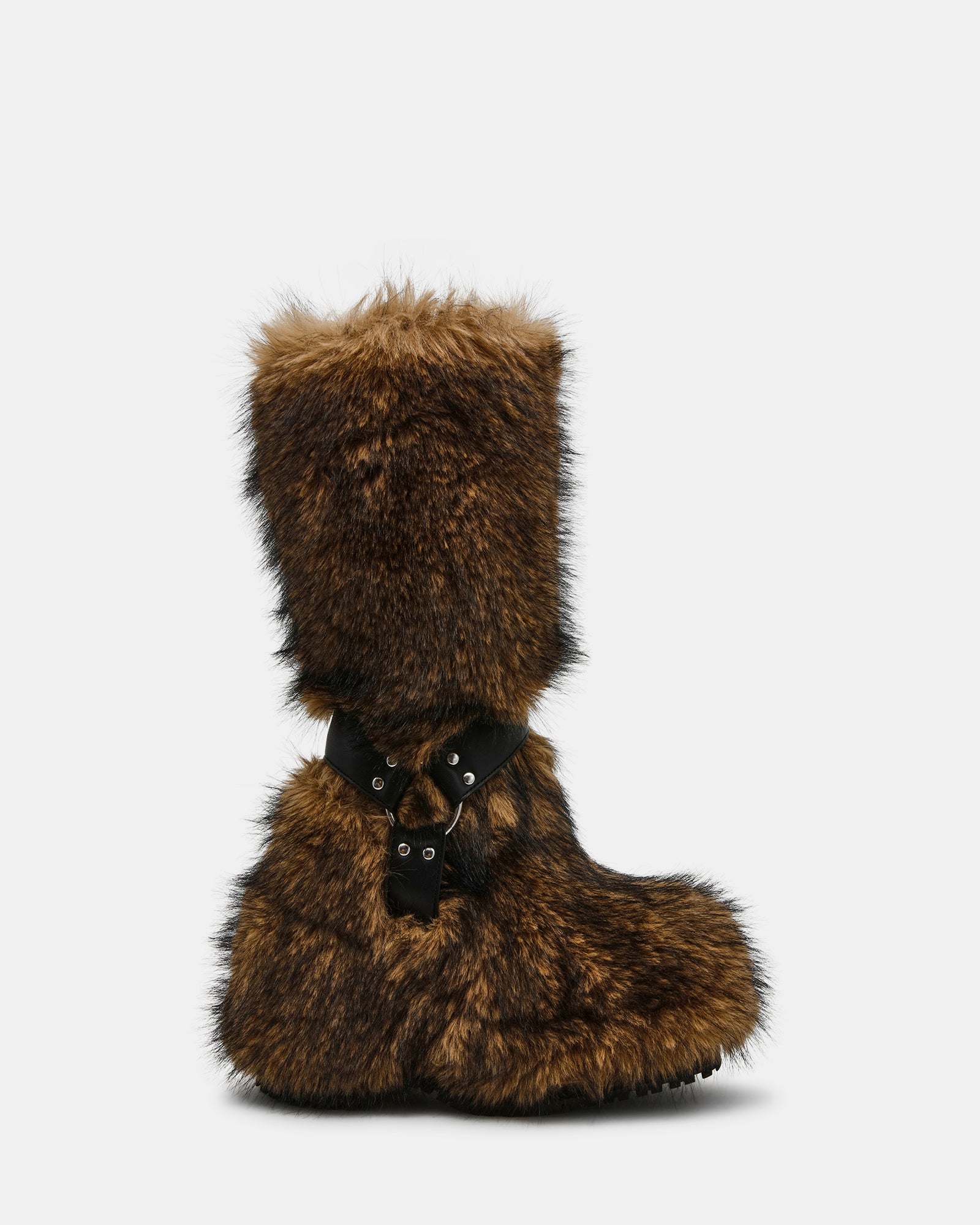 Stay warm and cozy all Winter in these epic DEFROST fluffy boots. This silhouette is both functional and super stylish with a little bit of edge in the hardware details.