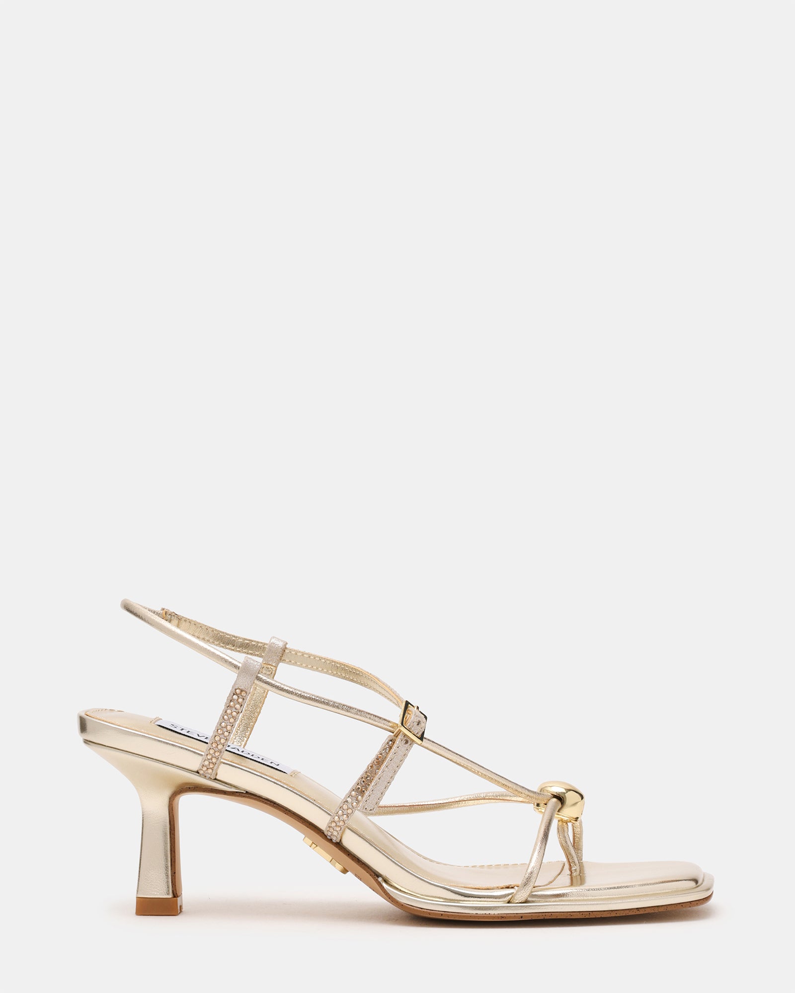 This stunning strappy heel is a must-have for your shoe collection. The JACKPOTS-R heel features dainty gold detailing and a short kitten heel with stunning straps.